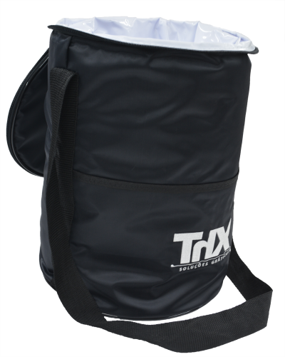 Descrição: Bolsa termica personalizada, em tecido nylon 420 e poliéster 600 (preto com cinza). Com alça de ombro regulável. Parte interna soldada com retensão de liquido.