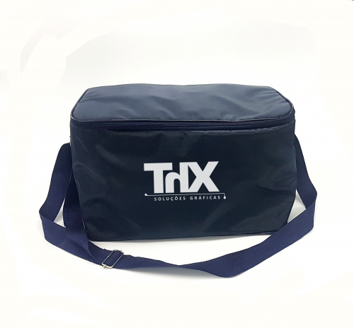 Descrição: Bolsa térmica em Nylon com alça de ombro com regulagem de altura. Possui zíper com dois cursores. Acabamanto vivo na tampa e na parte inferior.